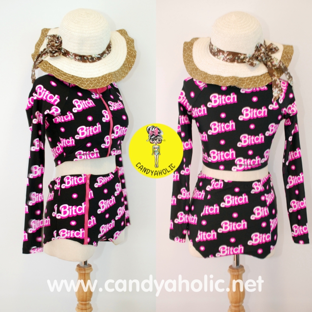 ชุดว่ายน้ำแขนยาว Bitche ชุดว่ายน้ำ ทูพีทแนววินเทจ พิมพ์ลาย Bitche