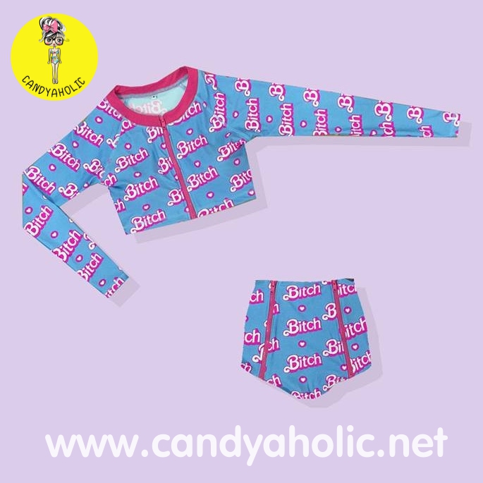 ชุดว่ายน้ำแขนยาว Bitche ชุดว่ายน้ำ ทูพีทแนววินเทจ พิมพ์ลาย Bitche